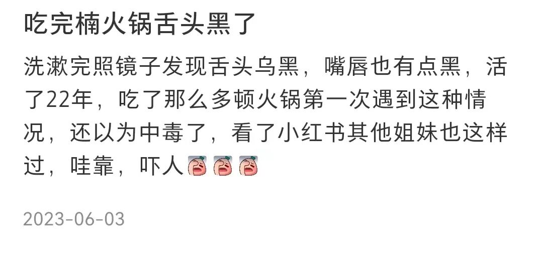 不知道大伙有没有吃火锅或者其它食物导致舌头变黑的经历。