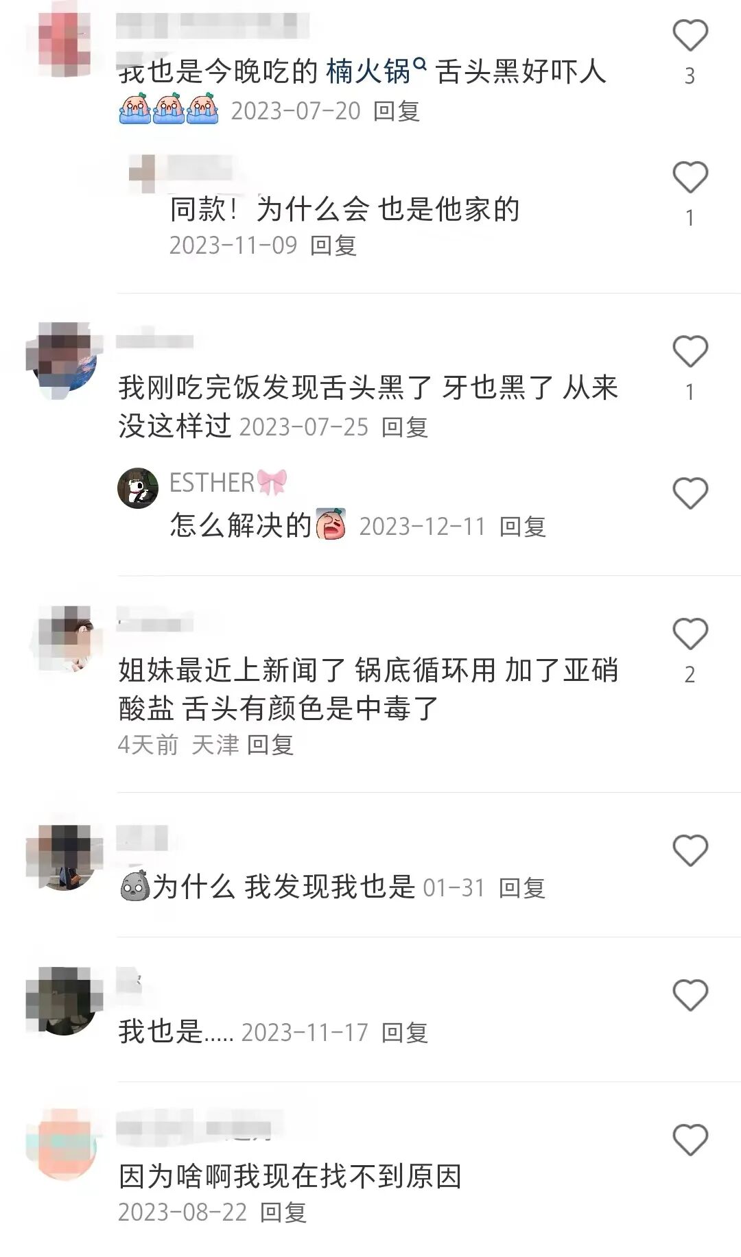 近日,浙江杭州的一网友在抖音发布了一条视频,说自己和母亲在楠火锅就完餐后舌头发黑,并晒出了照片。