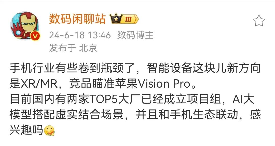像苹果,也在研发可折叠的移动产品;而我国的一些厂商,也已经成立了项目组,去研发对标Vision Pro的XR/MR产品,各个科技公司也在大力研究AI技术。
