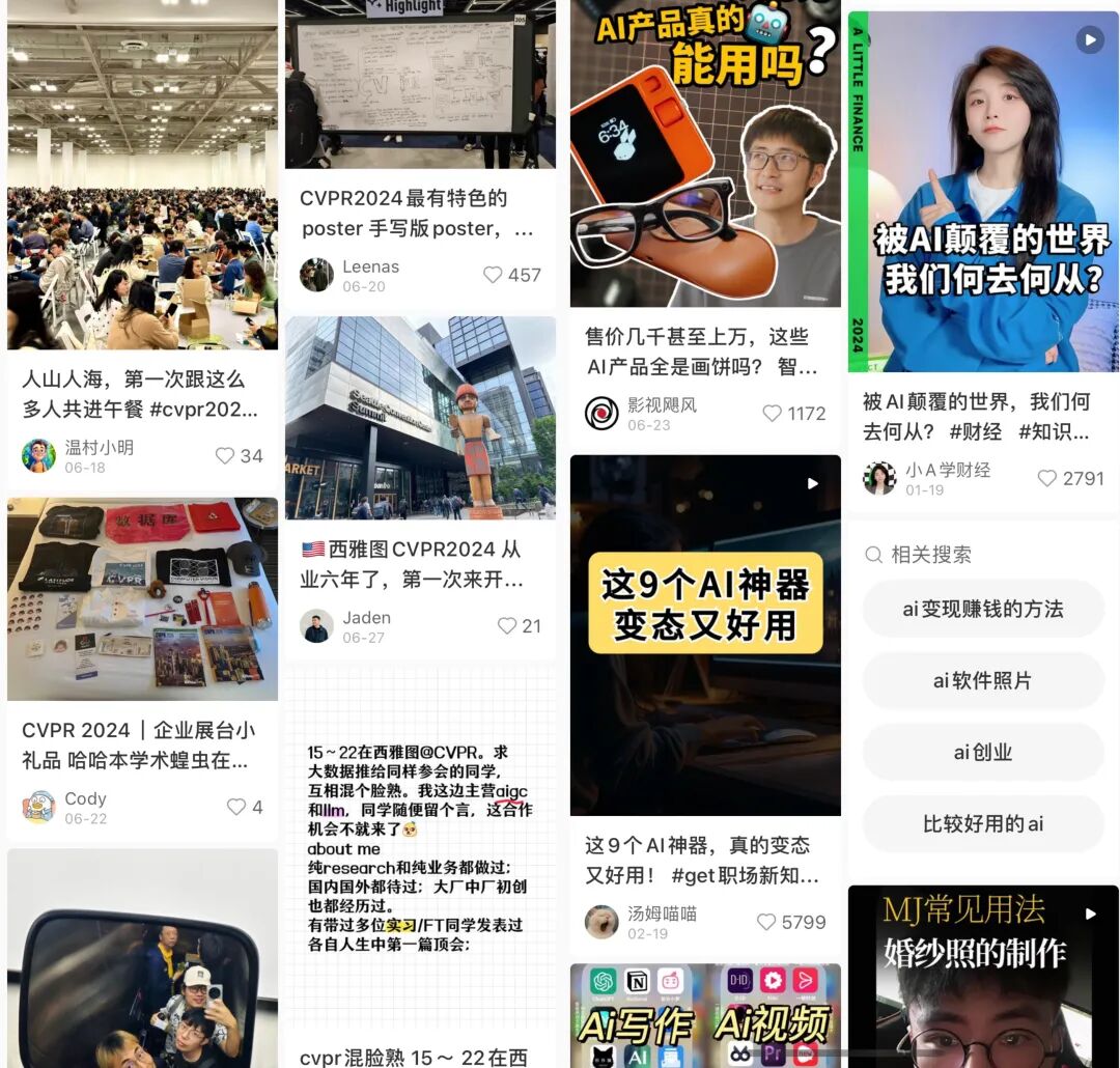 能看到的是,目前小红书也开始发力当前科技赛道十分火热的AI。此前,学术界爆火的计算机视觉和模式识别领域的顶级会议之一CVPR大会,各种细节的现场直击、参会吐槽,都在小红书上最先出现,CVPR的最佳paper获奖者之一,也率先在小红书分享了喜讯。