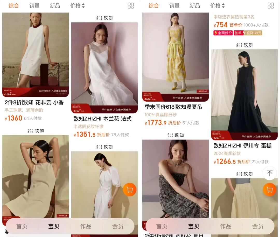 直到董洁在直播间推介致知。2023年,董洁在小红书直播间开始推荐致知品牌的连衣裙、大衣和一系列上衣等服装,由于设计简约、知性,十分贴合董洁的个人年龄和气质,俘获众多精致白领,并在全网走红。