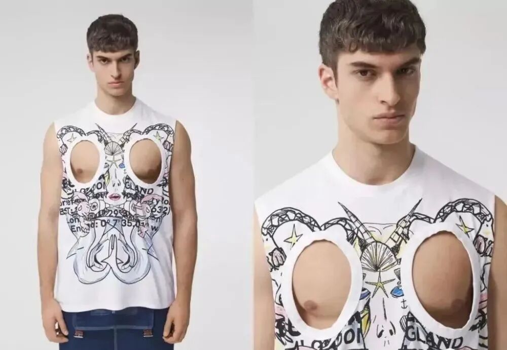 Burberry推出过一款镂空T恤衫,不要怀疑你的眼睛,胸肌不是衣服的一部分,而是模特实实在在的皮肤。