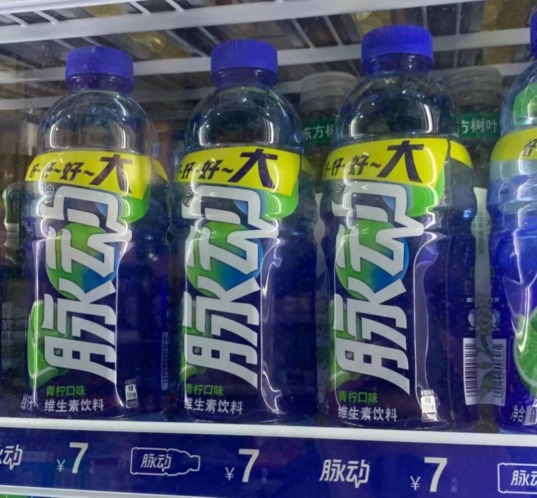 脉动也出现1L的大包装以及400ml的小包装。品牌甚至还在1L的大包装上“整起了活”,瓶身印上了“好~好~好~大”的字样。