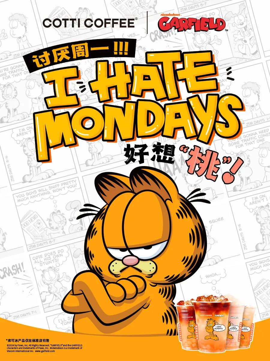 点评:近期电影《加菲猫家族》热映,加菲猫讨厌周一的性格也引起了不少打工人的共鸣,库迪此次联名抓住时机为大家提供了一定的情绪价值。
