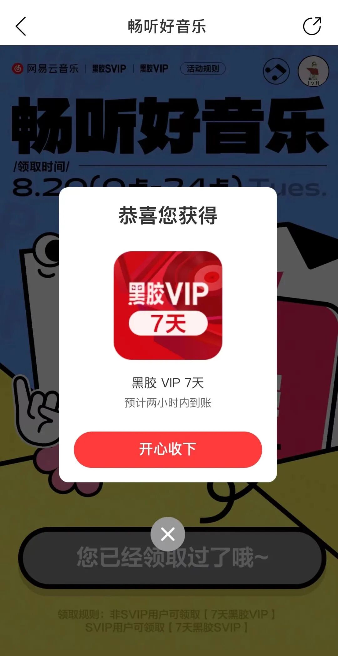 不仅如此,网易云音乐还将承担直接的经济损失。作为补偿,此次网易云发放的“黑胶VIP”,连续包月首月最低在8元。按照8元、2.06亿用户、7天来计算,网易云音乐补偿方案的对应价值高达3.89亿元。