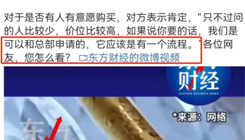 周大福也回应价位比较高、询价比较少,想买的需要跟总部申请。