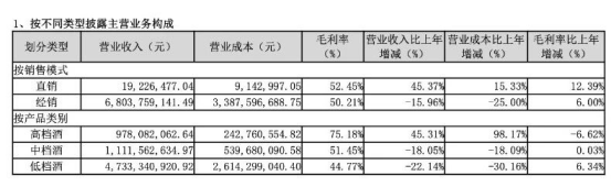 但通过上面的表格,2023年牛栏山高端酒的毛利率是下降的,低端酒的毛利率是上升的,加上后者比前身就领先了一个数量级,才让白酒业务总体毛利率有了明显的提升。