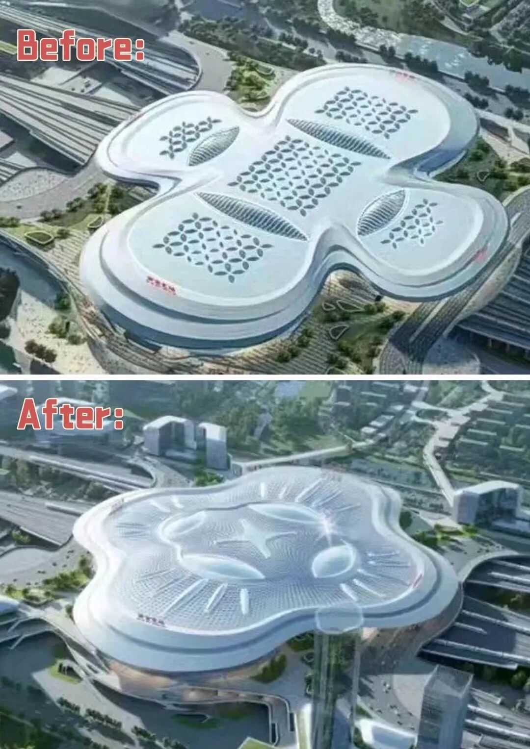 或许是迫于舆论的压力,或者是后知后觉梅花造型爆改“卫生巾”,最近南京北站又上线了最新的方案。