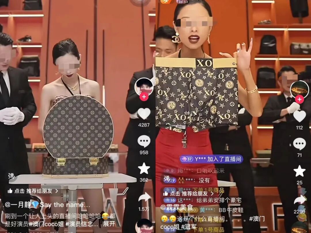 澳门coco姐装修成高端奢侈品专柜风格的直播间;