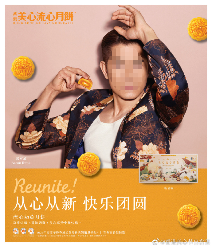 去年美心月饼的中秋广告海报中,天王郭富城代言的宣传图姿势就被网友发现与椰树的广告姿势相似。