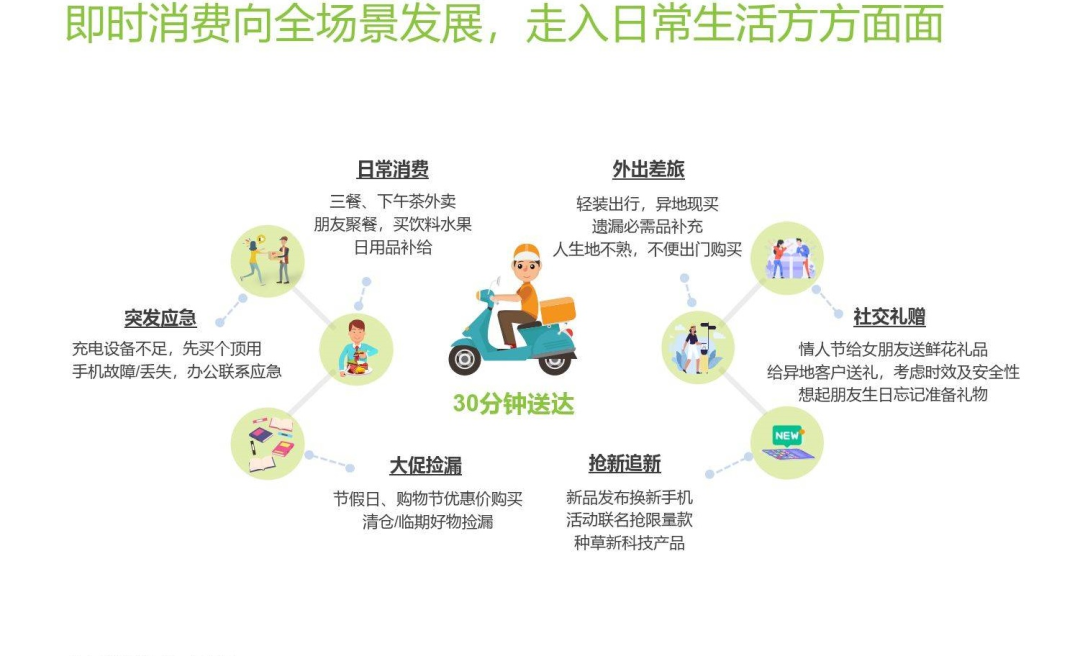 譬如,2024年5月,京东整合京东小时达与京东到家,迭代为京东秒送,为消费者提供最快9分钟送达的购物体验,将即时零售的配送时间从“小时”级提升到“分钟”级。