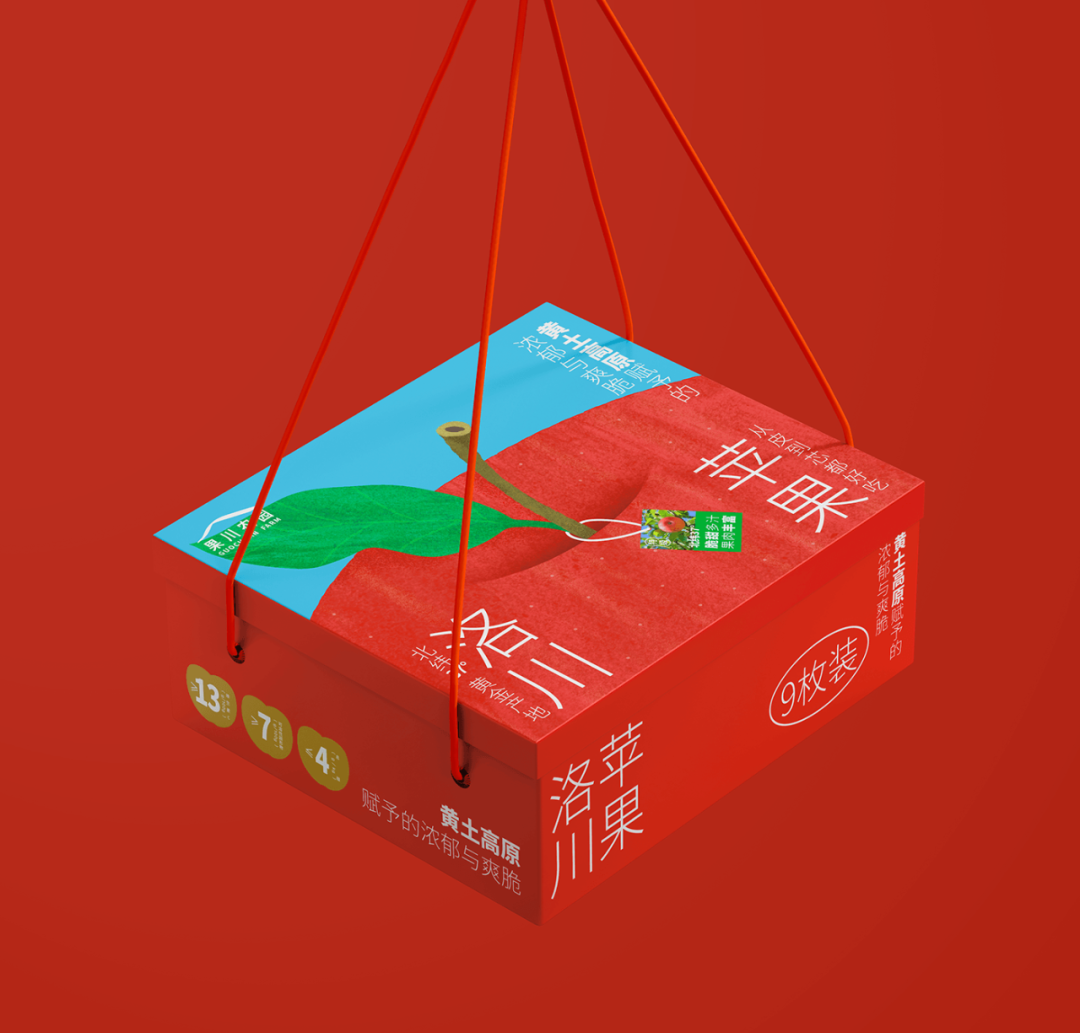 整体设计风格简洁、有力,希望能够让消费者在感官之外,收获一份情感的共鸣。“心系自然,热爱土地”,这款洛川苹果的包装设计,正是农人对这份热爱和追求的呈现。