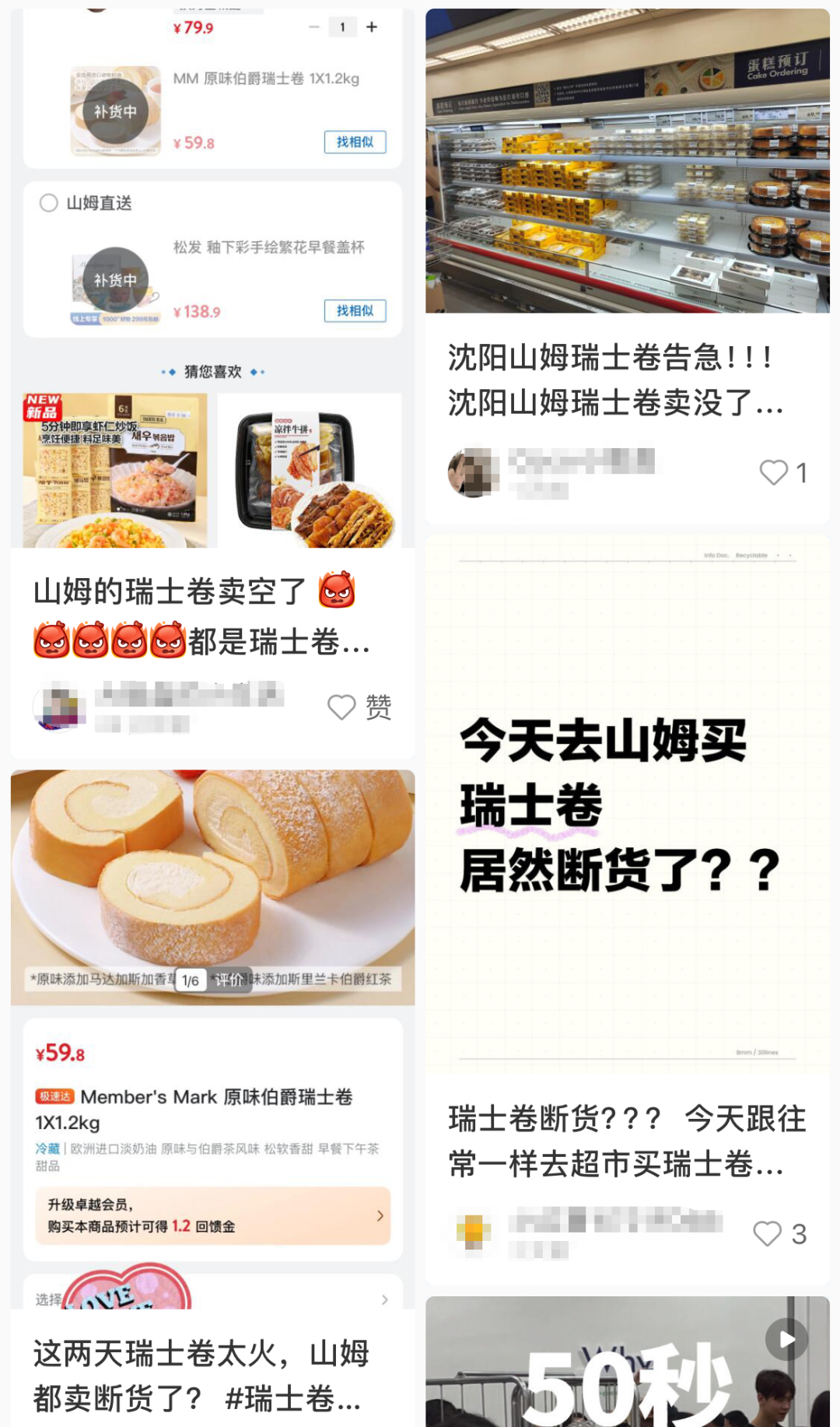 在小红书平台上,不少网友反馈最近山姆瑞士卷被抢脱销,想吃根本买不到。