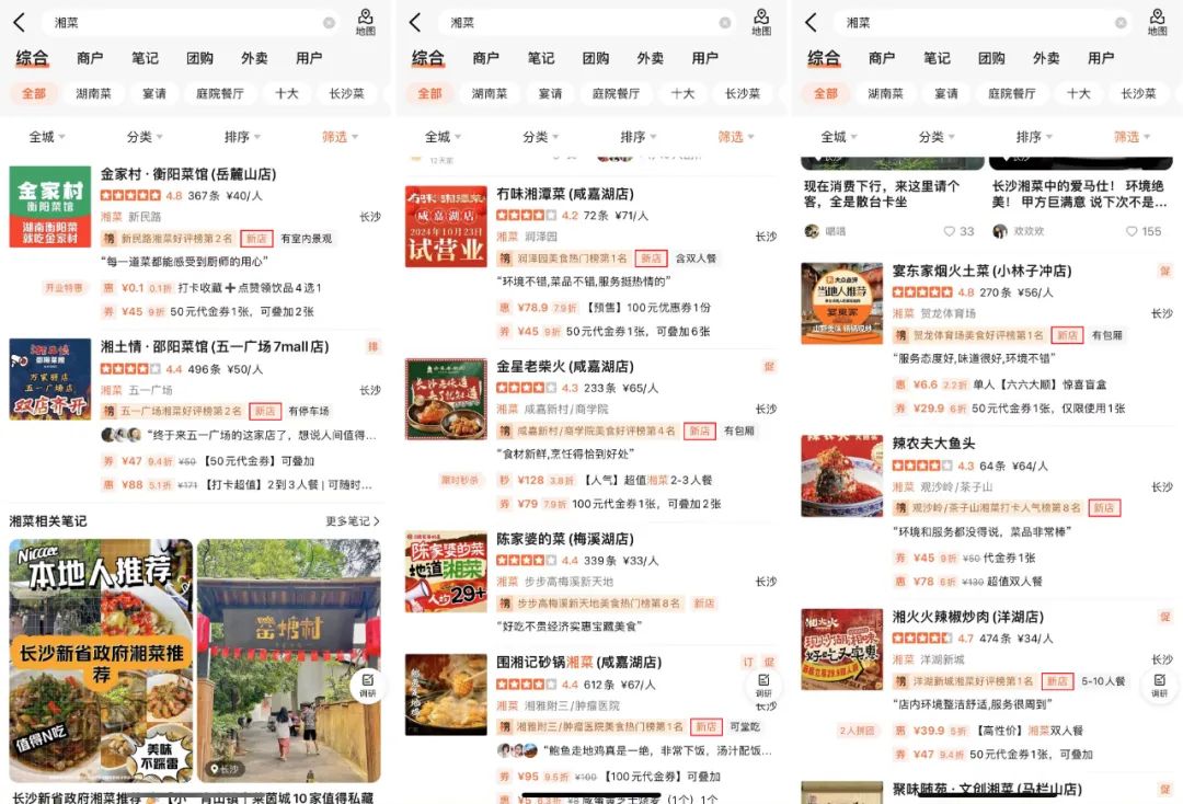另外,全国各地,掀起了一波湘菜的开店热。这里既有耳熟能详的头部品牌,还有不少区域连锁和夫妻老婆店。比如内参君定位在“大本营”长沙,仅工商大学周边,就搜出了数十家开业的新店,有意思的是,衡阳菜馆、邵阳菜馆、湘潭菜等林立,细分趋势格外明显,不少品牌还挂出“当地人推荐”的关键词,试图在激烈的竞争中多一分胜算。