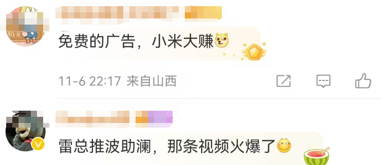 哪怕不是联合营销,但在米粉自发享晒手机后,雷军也及时接住泼天流量下场整活,打的就是比瑞士卷还卷的商战。