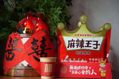 比如喜茶在520推出领证领取奶茶活动,麻辣王子设计辣条婚礼招募活动,为新人提供辣条婚庆零食和定制巨长辣条。