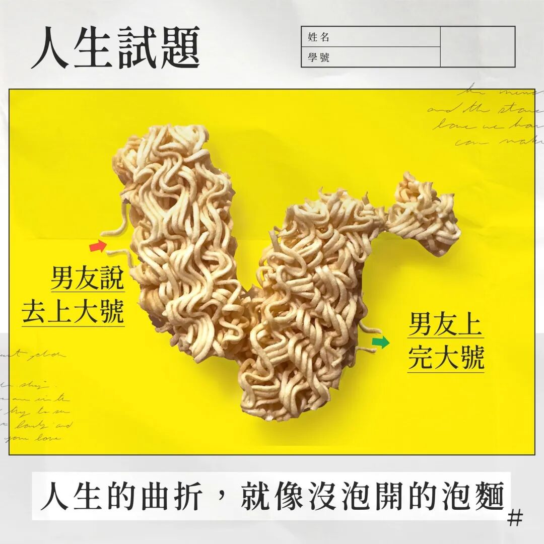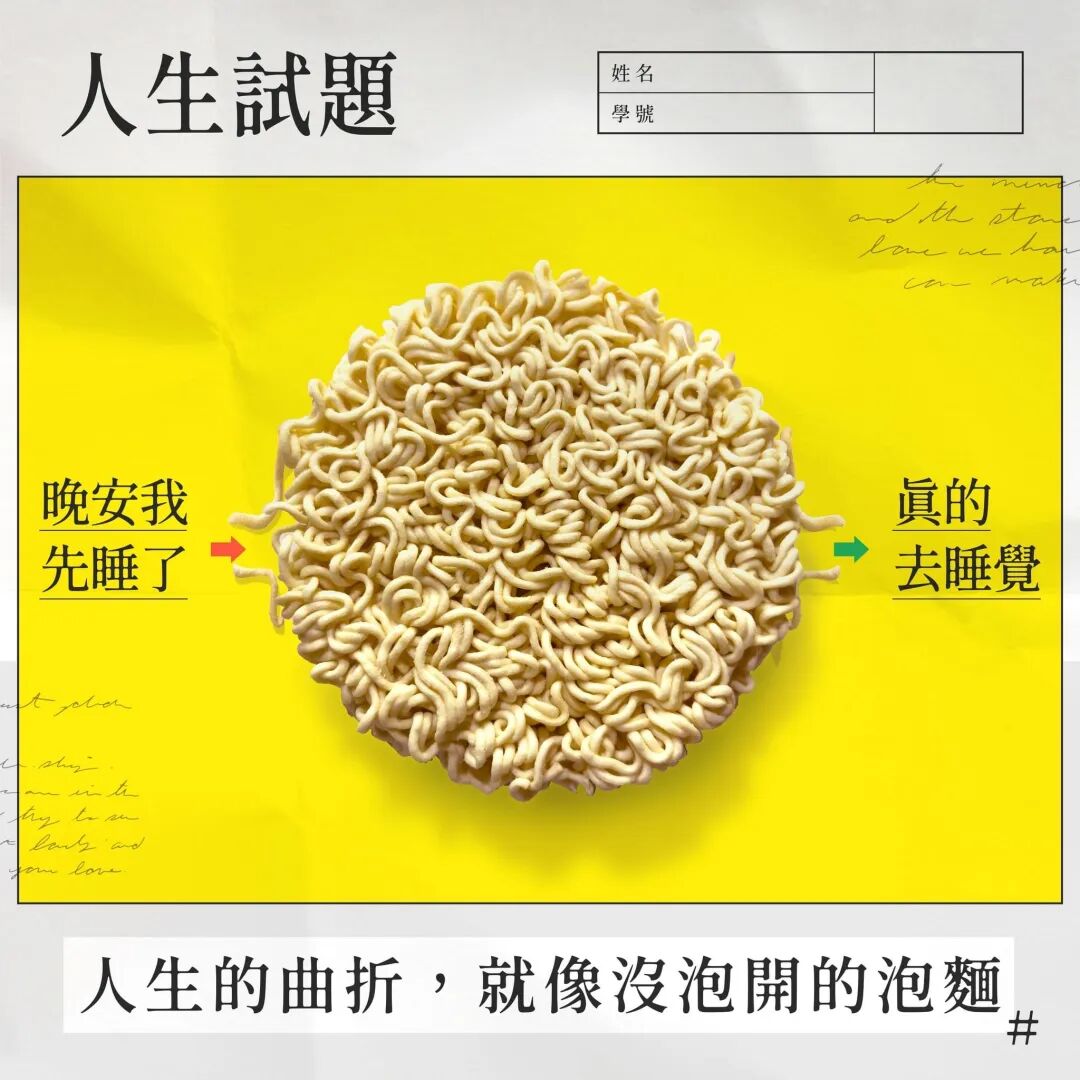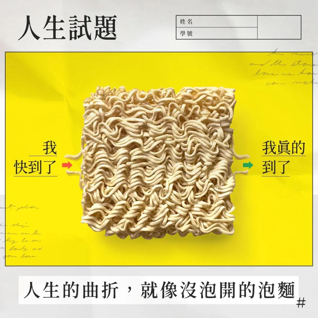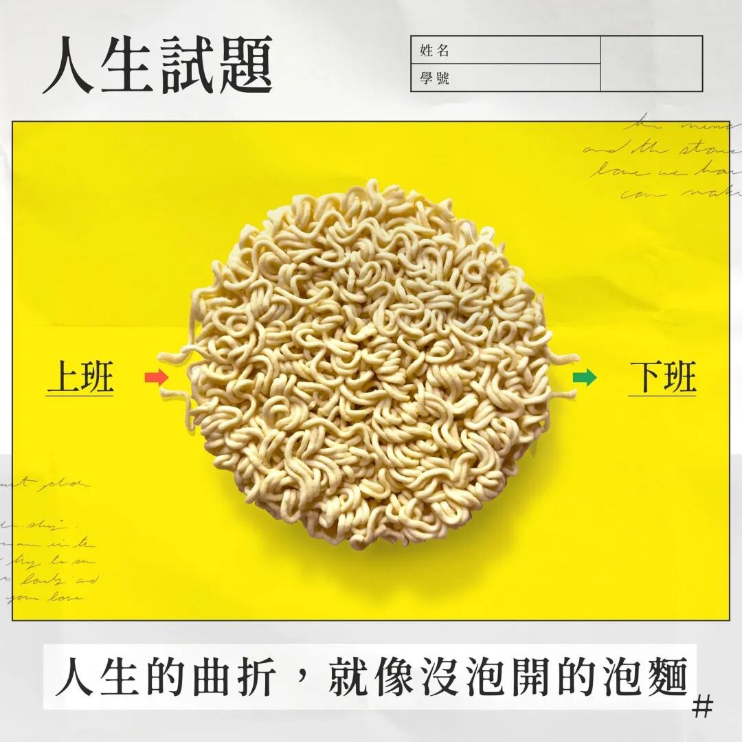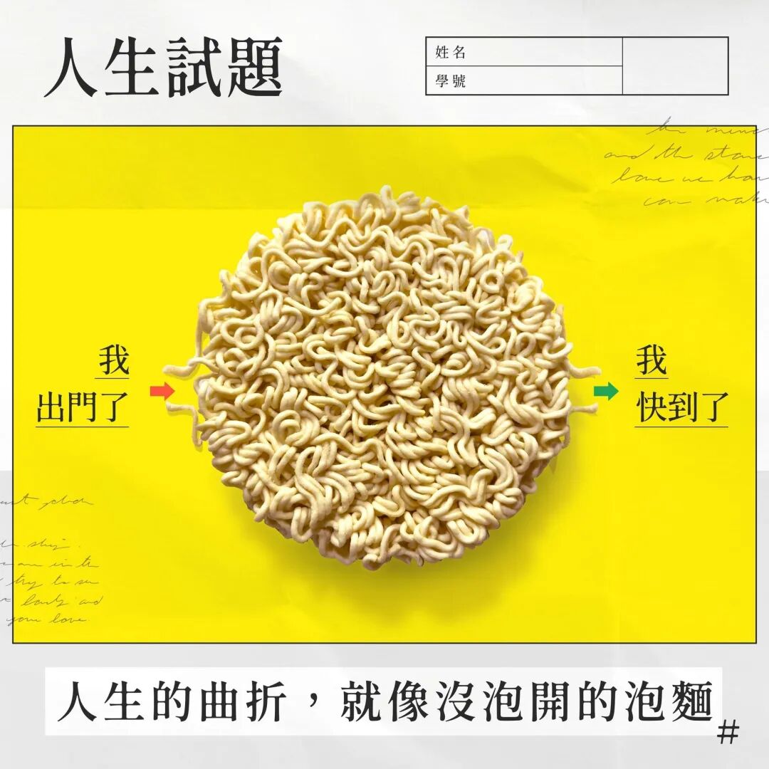 比如人生试题系列海报,通过泡面的形状比喻人生的道路,传递面对困难时的豁达态度。