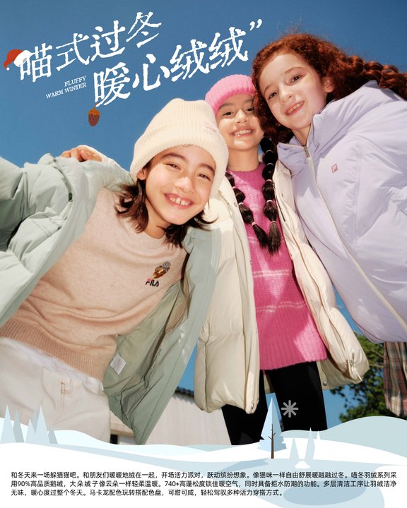 近期,FILA KIDS 以「喵式过冬 暖心绒绒」为主题,为孩子们绘制了一幅温馨而趣味的冬日画卷,铸造童趣与温暖的完美碰撞。