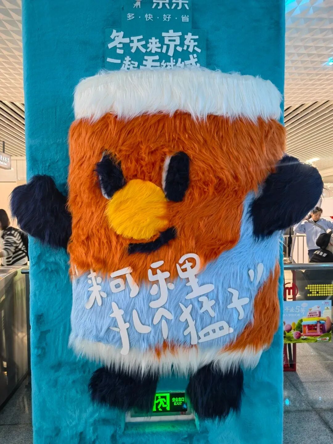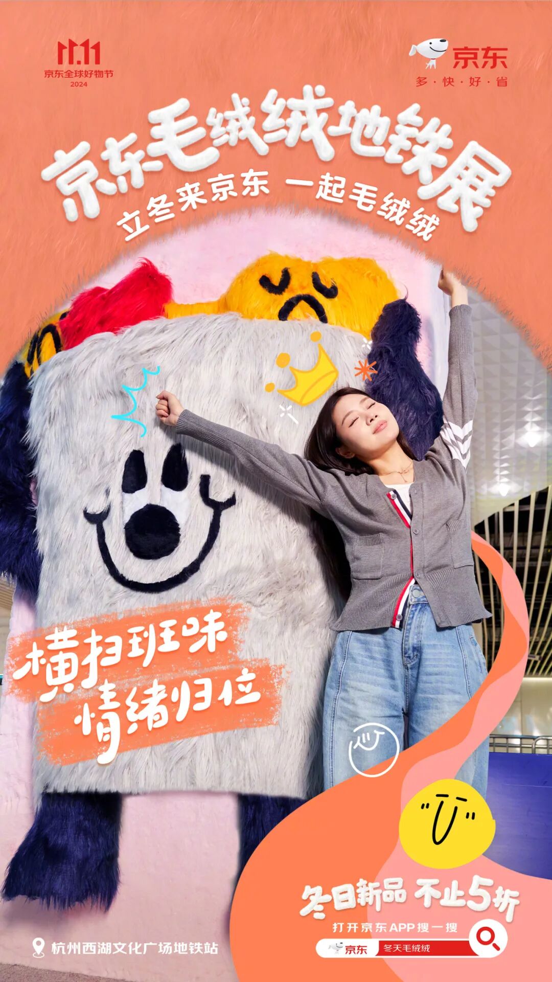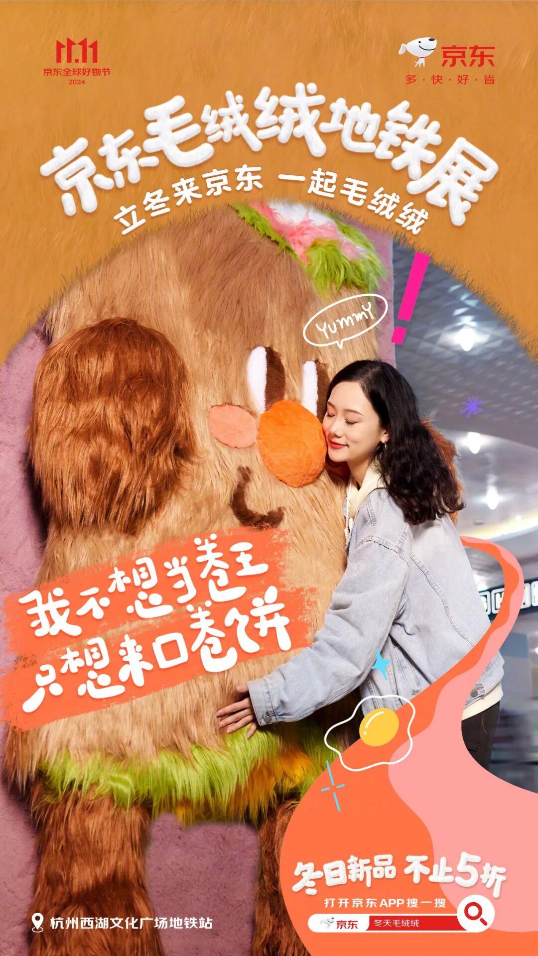 之所以在杭州西湖文化广场地铁站打造这样一个展,是因为立冬了,全国各地开始进入速冻模式,京东也上新了一波冬季毛绒绒新品,有毛绒手机壳、暖融融的毛毛大衣、软软糯糯的玩偶,并带来了不止5折的福利。