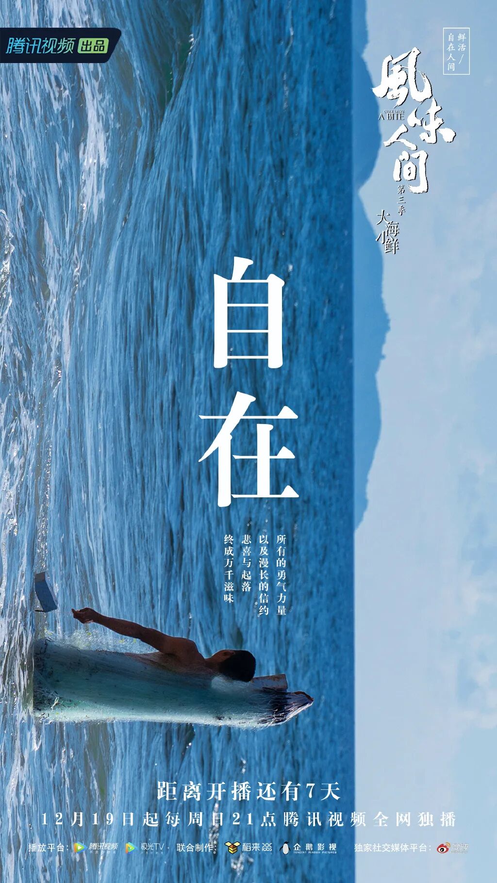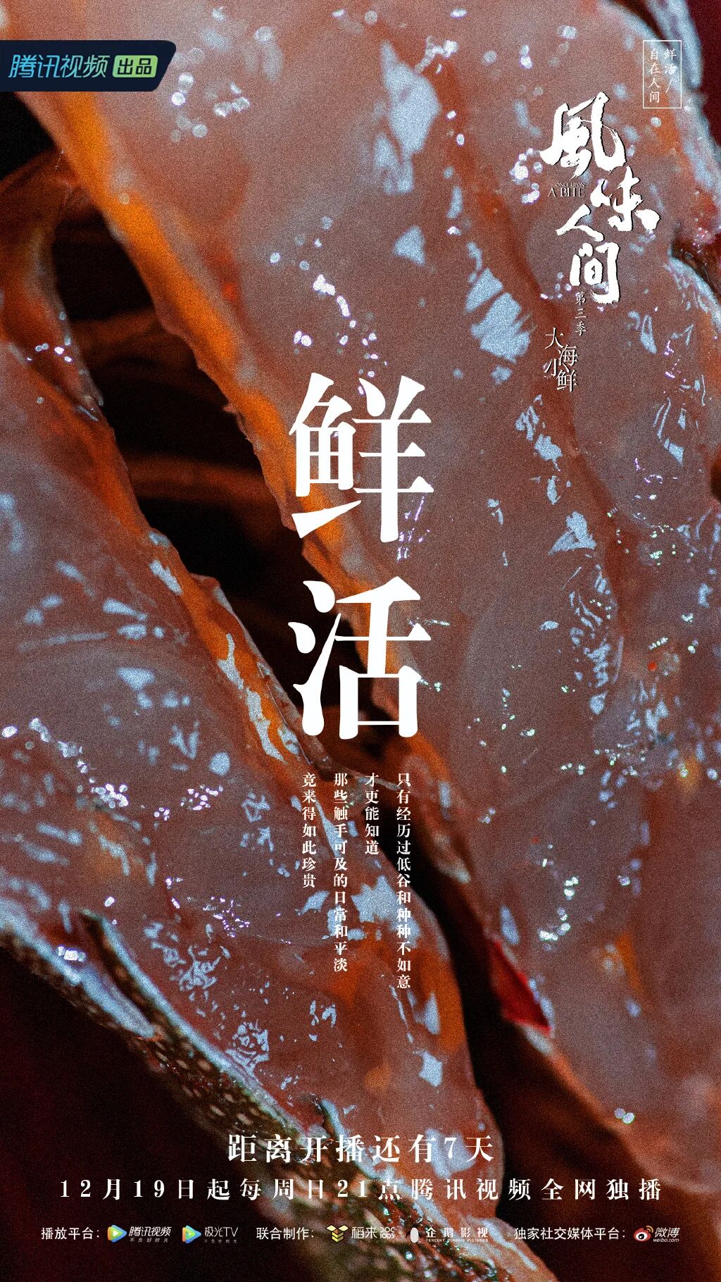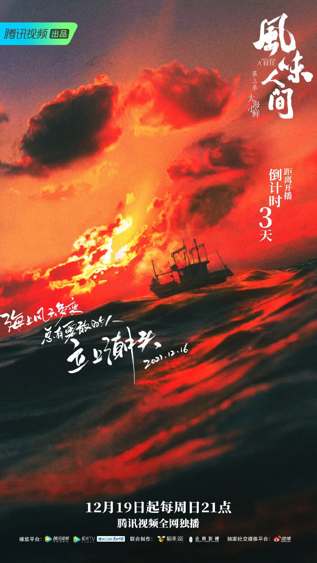 第三季主视觉海报以大小海鲜为主题,因此主视觉是鱼鳞片化为大海,一搜渔船由深海驶向浅滩,海鲜的味道扑面而来。