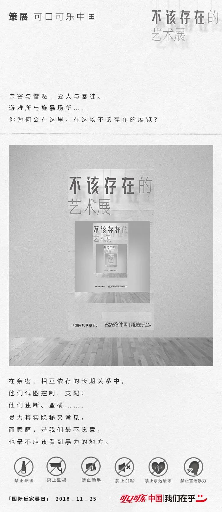 可口可乐也曾办了一场“不该存在的艺术展”。呼吁抵制家暴。