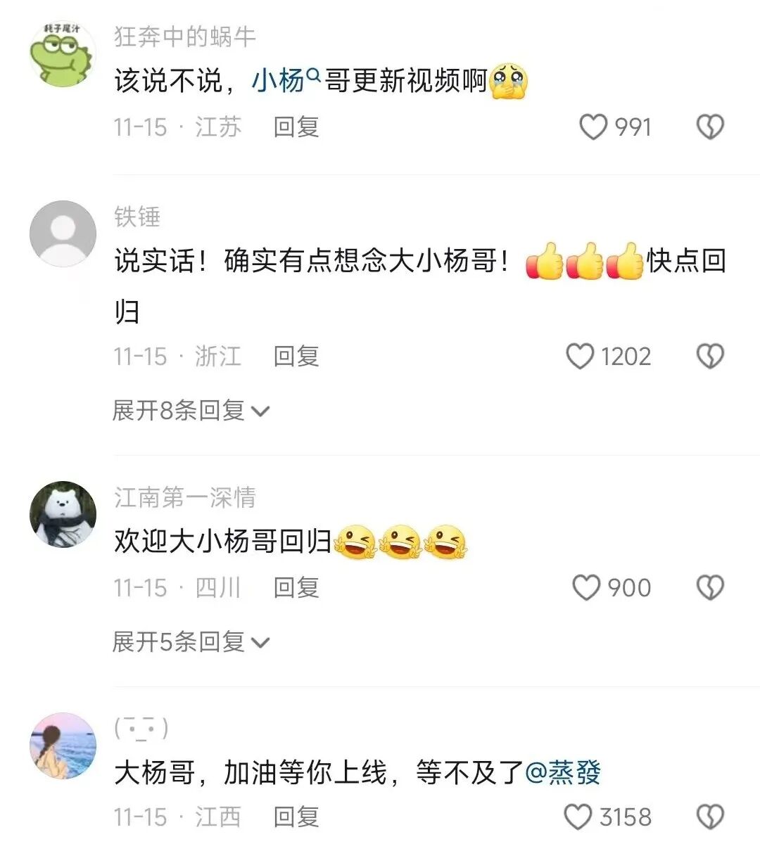 在停播的近3个月时间里,相较于大众圈层对小杨哥回归的揶揄,粉丝们则对小杨哥的回归保持了极大的期待感。