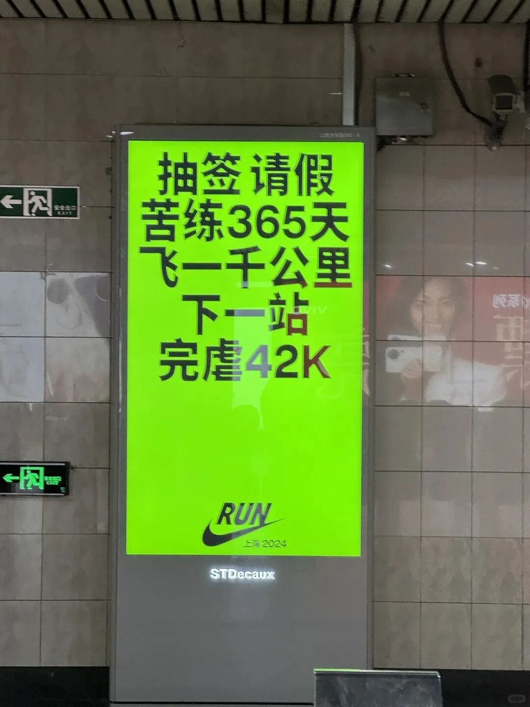 耐克抓住跑马者的痛点,写了一个心路历程。投放在地铁站,一下地铁就能感受一场沉浸式心理陪跑。