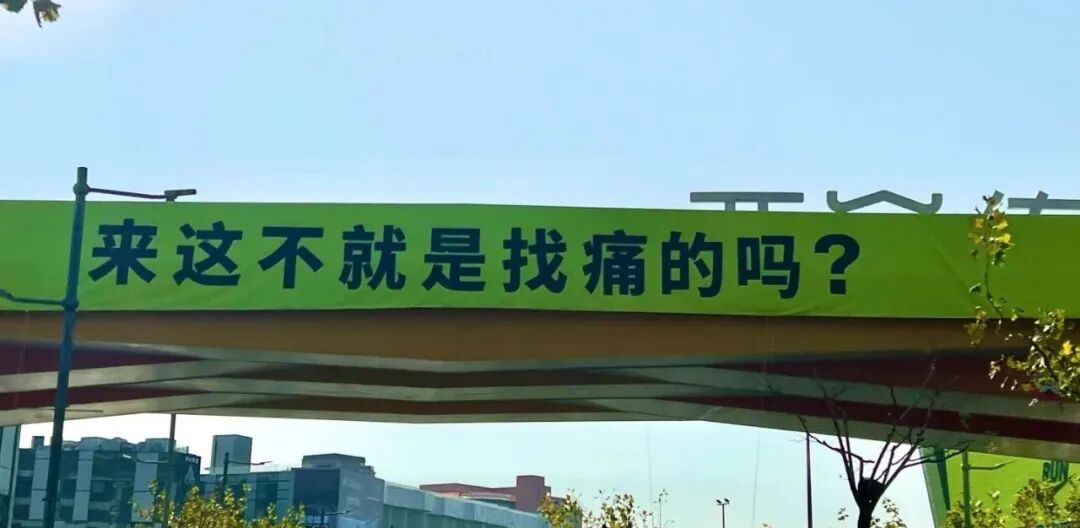 为了激励跑马者,耐克在跑道附近投放了一组“痛就对了”,“没苦硬吃”的文案,主打一个精神PUA。