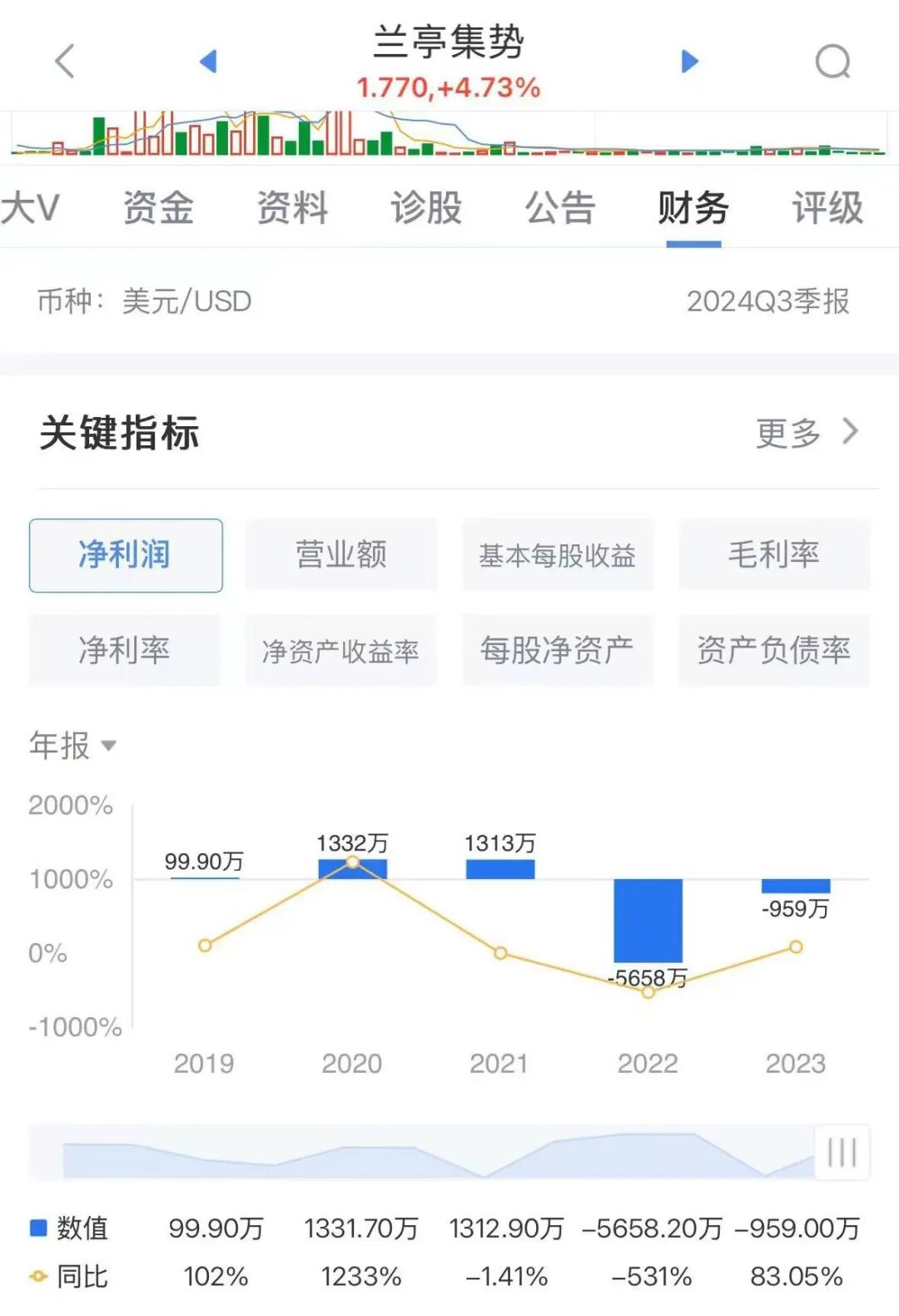 截至目前兰亭集势也没有扭转颓势,在2024年6月30日的财年,兰亭集势的营收同比减少了58.61%,归母净利润亏损达320.7万美元。实际上兰亭集势的盈利状况一直不容乐观,在2023年仍亏损959万美元。