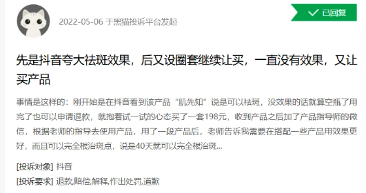 在黑猫投诉平台上,有不少消费者投诉肌先知品牌的相关产品夸大宣传效果并虚假宣传。