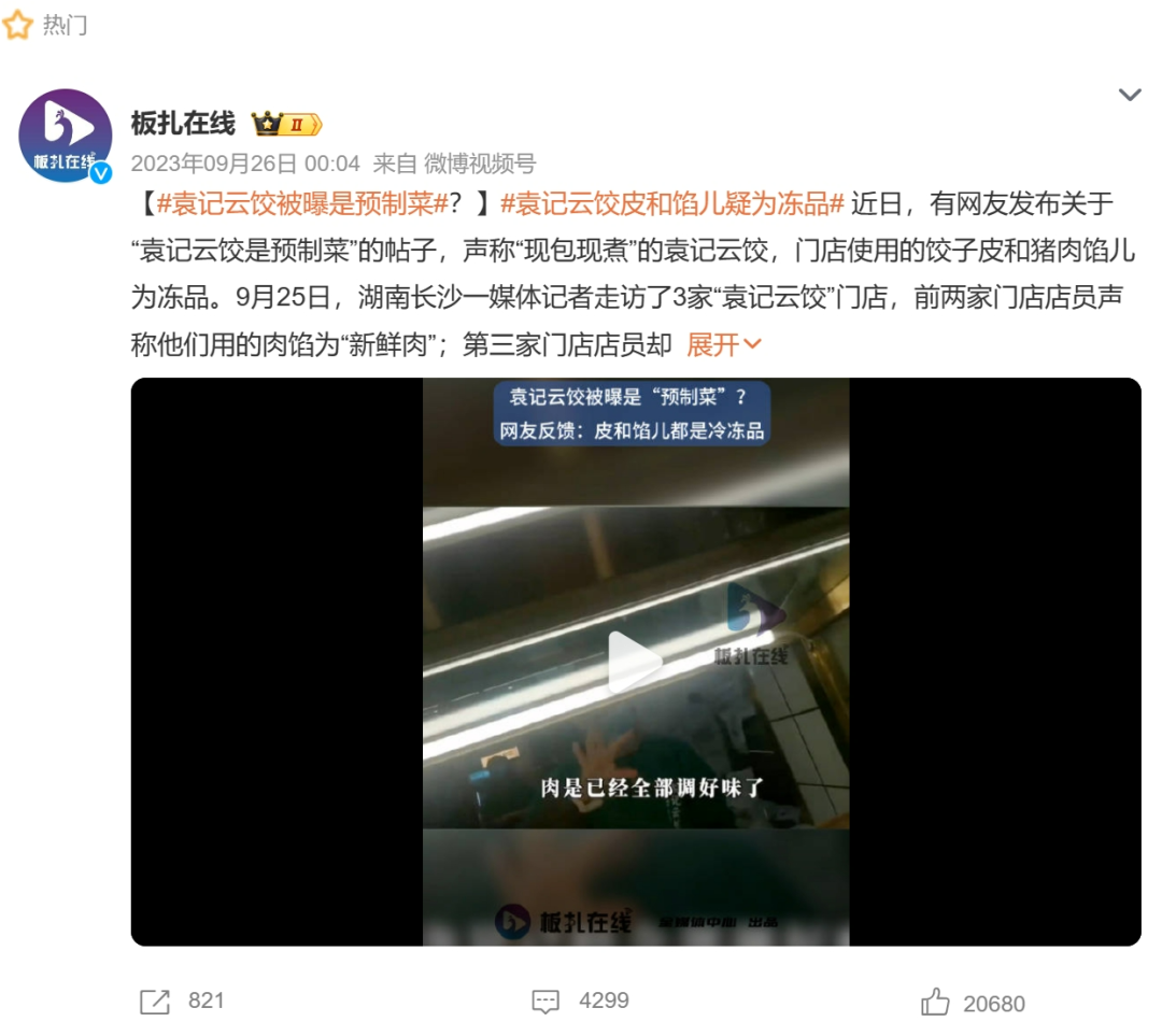 虽然品牌方解释采用预制是为了保证食品安全和品质,但宣传和现实的巨大落差,令不少消费者感觉自己被“欺骗”了。