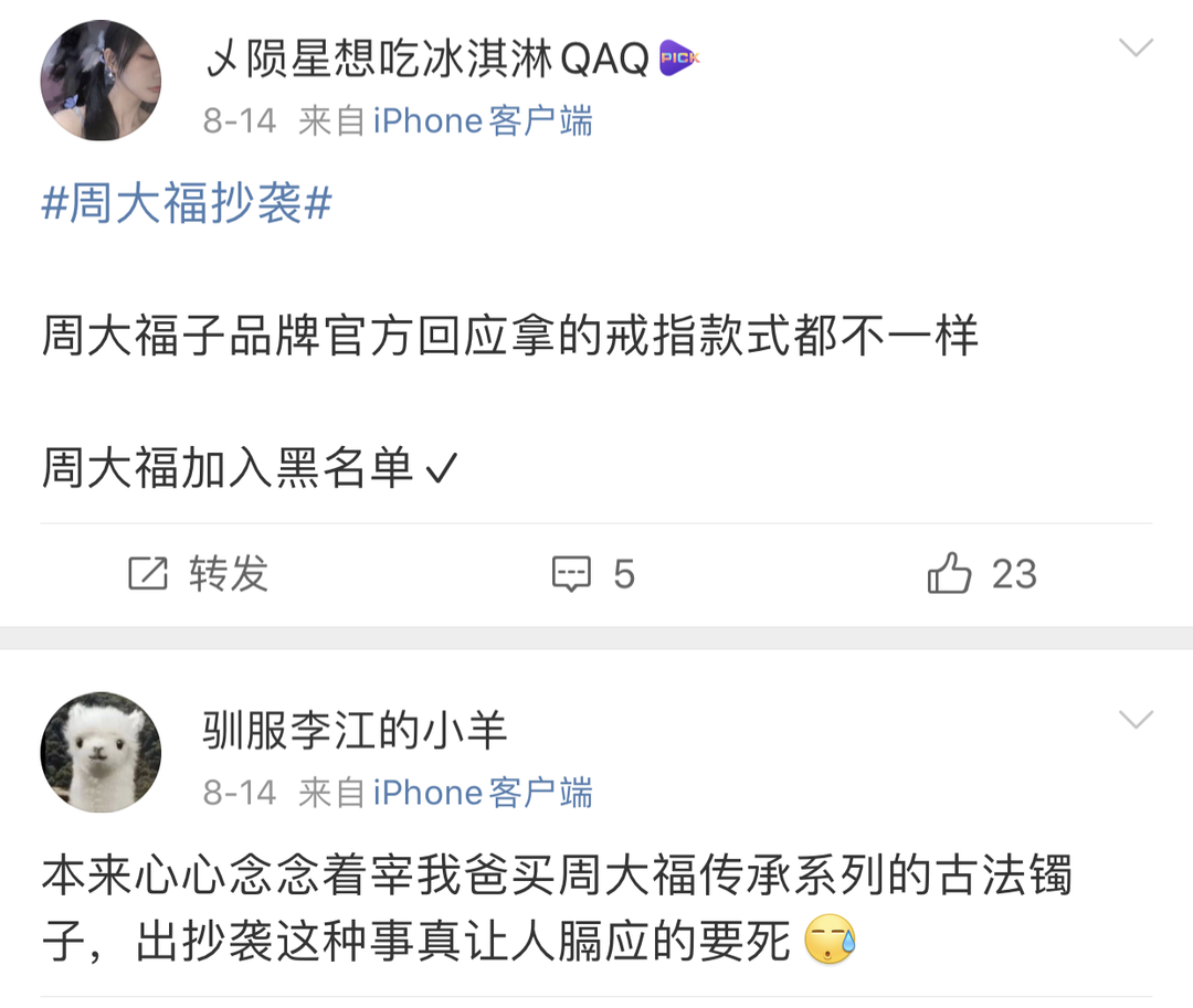 众所周知,周大福一直以来都是珠宝行业的巨头品牌,然而,最近周大福却因“抄袭门”陷入舆论风波,导致品牌形象大打折扣,品牌口碑直线下滑。