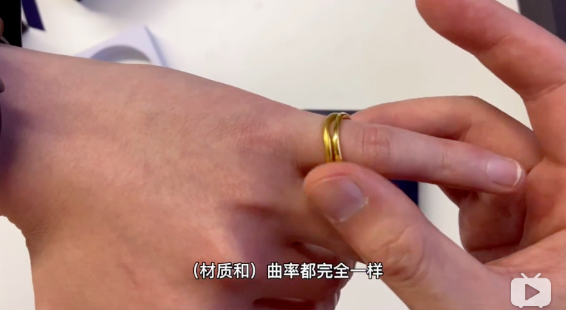 通过视频了解到,两款戒指的材质、工艺和曲度完全一样,都是采用3D硬金工艺。