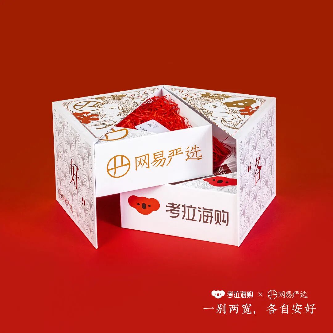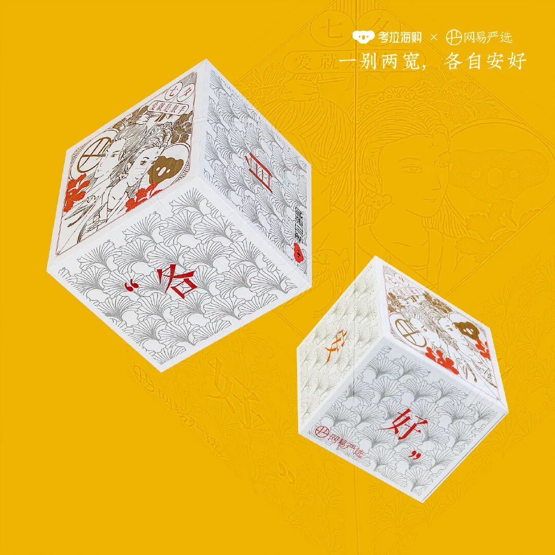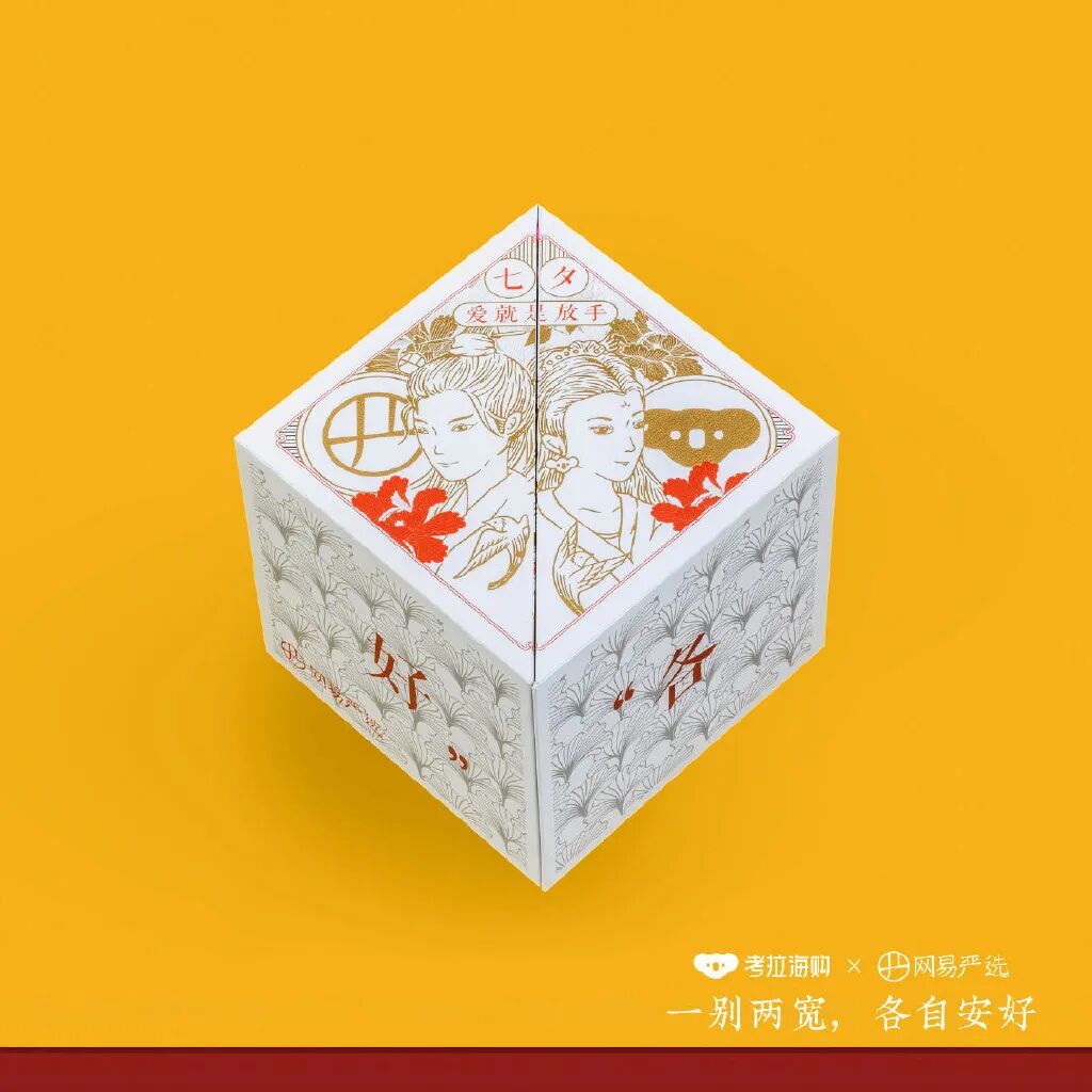看到短片的最后才发现,网易严选和考拉海购心机满满,表面上是庆祝分手快乐,实则是预热神秘事物的上线。治愈系的插画,人格化的品牌形象,再加上腻歪的情话,成就了这支可爱又暖心的短片。网易严选和考拉借势分手一周年的营销的热点,结合七夕的节点话题,把双方打造成“分手快乐的组合”,顺势植入活动上线信息,堪称创意十足。要是你对短片中严选送考拉的礼物念念不忘,那就说明你成功被套路了!果不其然,接下来网易严选和考拉海购官宣七夕限定款“爱就是放手”礼盒。“爱就是放手”作为分手一周年的见证,也代表满满的分手仪式感。据说礼盒包含了前男友面膜和网易严选购物卡,而且考拉表示礼盒只送不卖!透过海报可以看到,礼盒从概念到设计都颇有心思,礼盒概念主打“一别两宽,各自安好”,延续了短片中金句“有一种爱,是放手”的含义,象征着“彼此分别但又各自安好的祝福”。在礼盒包装上,可以看到一男一女的古风人物,代表着严选和考拉品牌,而在礼盒的四个面上,分别印着“各、自、安、好”四个字;此外,礼盒颠覆了常规向上翻的开启模式,而是设计成了对角线的打开形式。