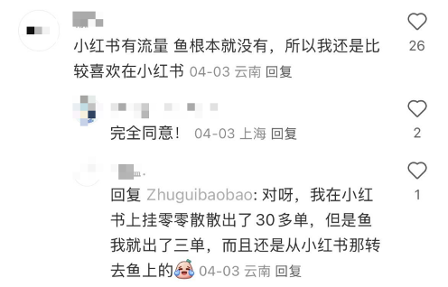 惊蛰研究所在蹲守小红书二手闲置帖以及评论区的过程中发现,流量大、“刀客”少,反应速度快,即当下俗称的活人感,是不少卖家选择小红书出闲置的主要原因。比如,有网友分享,自己在小红书上陆陆续续出了30多单,在某二手交易平台才成交3单,就连这三单还是从小红书上引流过去的。小红书的反应速度依赖于其庞大的用户基数。数据显示,2024年年末,小红书月活跃用户数均值稳定在3.3亿左右,2024年6月,日活用户达到1.29亿。