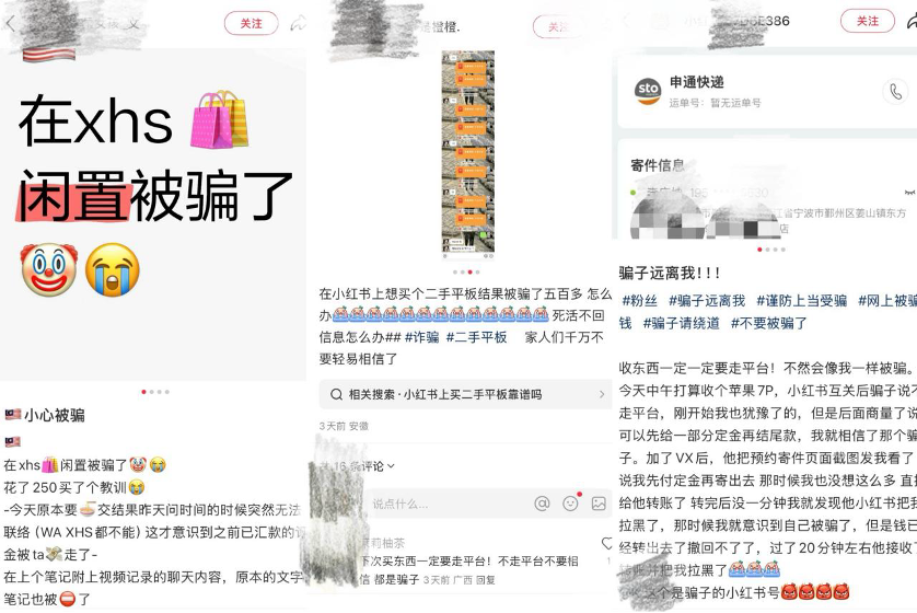 相较于线下自提和平台交易,邮寄交易的风险也会更高一些,因为这种交易方式完全依赖于买卖双方的信用基础。小红书上有不少用户分享了因脱离平台交易而受骗的经历,这些案例往往如出一辙:买家通过微信与卖家达成交易意向,在支付定金或全款后,随即被对方拉黑,最终钱货两空。