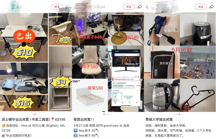 除了国内用户热衷于在小红书处理二手闲置,在海外留学或工作的网友们也在通过小红书完成“传递”。