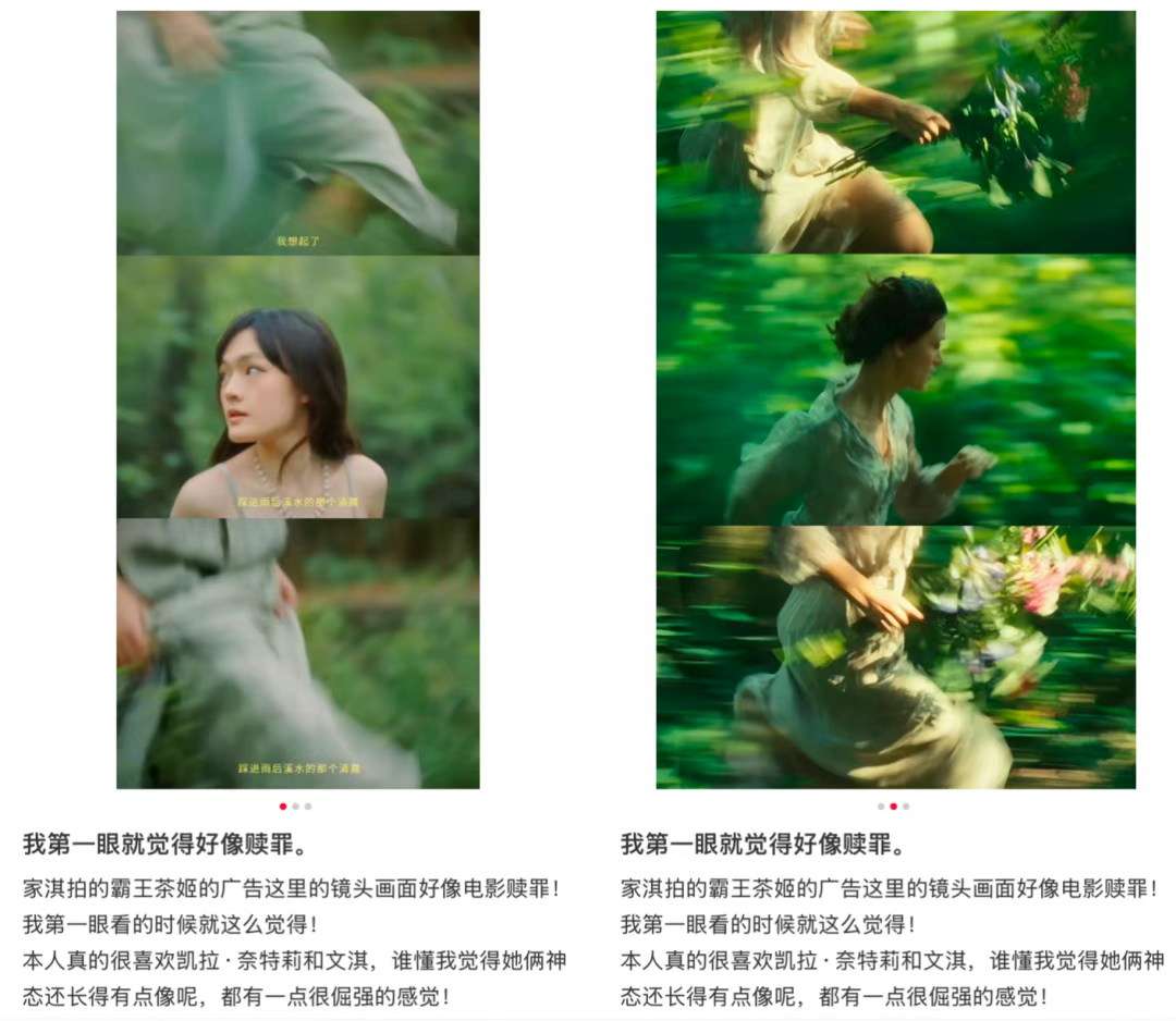 一下子,网友们都沸腾了,纷纷感慨“霸王茶姬的广告,是真姬啊”。