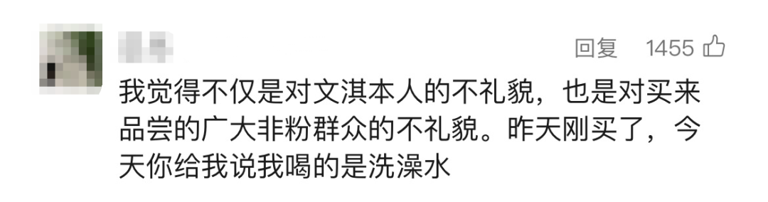一些喝了新品的网友刷到“文淇洗澡水”梗,感觉天都塌了。