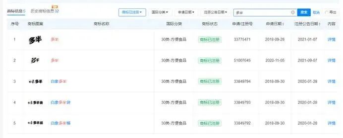 有趣的是,白象还申请过“多半袋”、“多半桶”等商标,但未通过,处于无效状态。