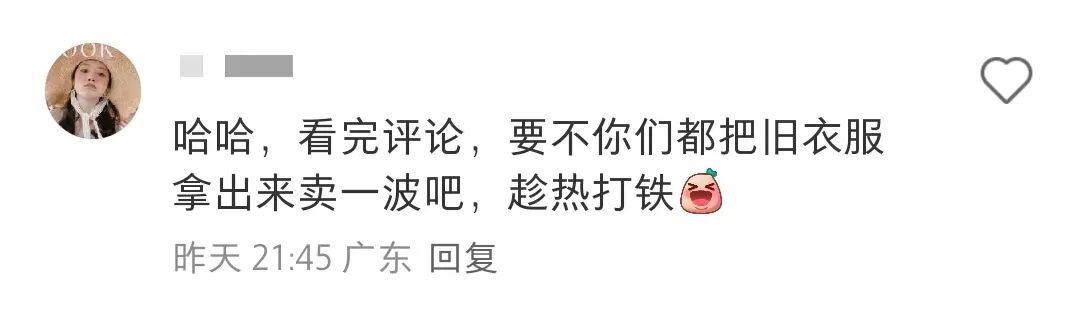 还有人建议要不把旧衣服拿出来卖一波吧,趁热打铁。