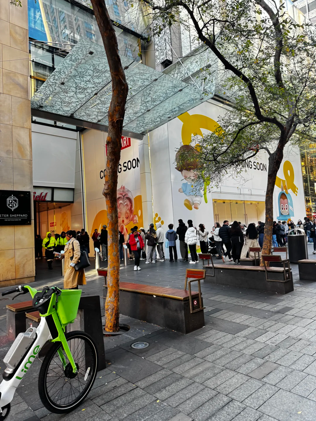 悉尼 Pitt Street Mall 外,数百人通宵排队,就为了能抢到 Labubu 盲盒 。甚至有人不惜花钱雇人排队,只为了能在第一时间拥有 Labubu,而这些盲盒转手就能翻倍卖,可见 Labubu 的火爆程度 。