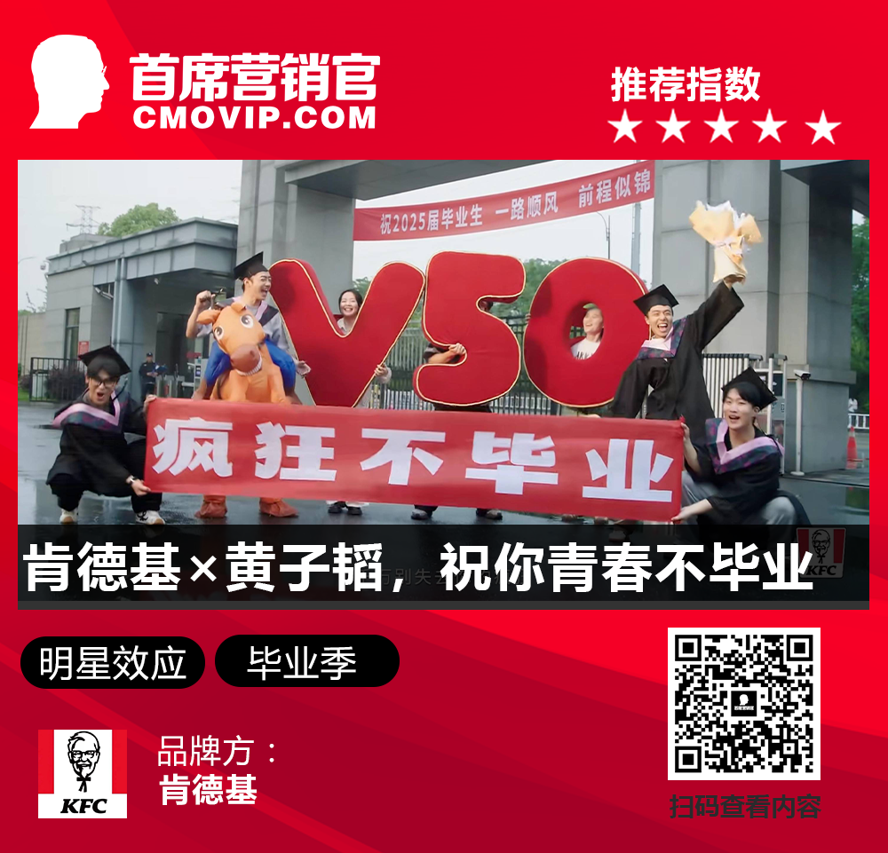 点评:肯德基在毕业季以乐观态度重构毕业季叙事,将品牌融入年轻人人生的重要节点,以情感营销的方式成功深化了 “青春陪伴者” 的品牌形象。