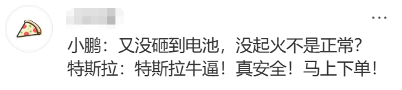 这一操作直接让广大网友对小鹏的质量有了一定的信任,以后小鹏的广告词也有新的方向了:硬抗导弹,战绩可查。
