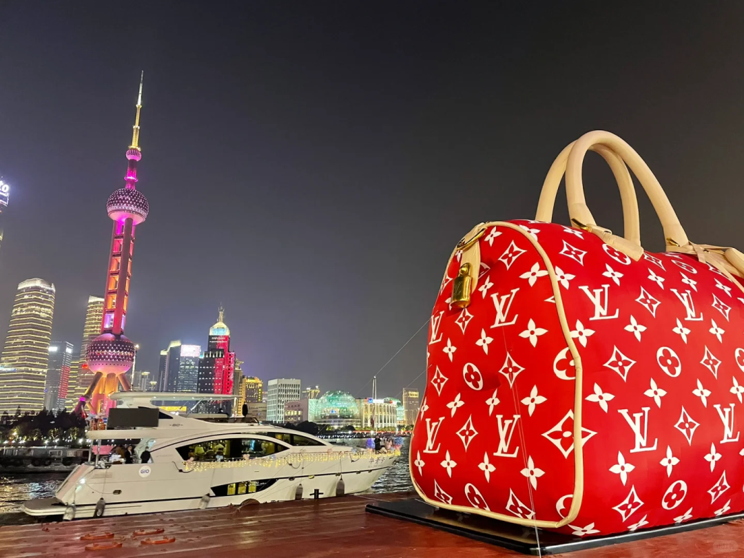 与脉动创意一样,这些品牌的巨型装置,创意思路都是将自家标志性产品放大,形成强烈的视觉冲击,类似的还有LV把“显眼包”放在黄浦江上,让巨型LV包游过上海黄浦江;