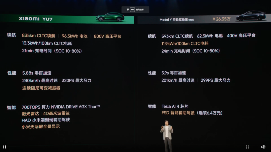 但我们依然制定了“离谱”的目标:小米YU7要继续挑战Model Y。就产品力来说,我特别有信心。至于销量,就看发布后大家的感觉。