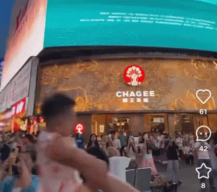 当时霸王茶姬在上方的大屏投放了户外广告,其中一个“杜甫跨坐在杜甫江阁”的镜头,看起来非常像把茶颜悦色骑在了头上,在当时引起了不小讨论。