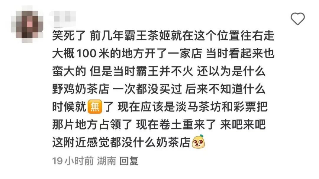 有网友还透露,其实在霸王茶姬还是无名小卒的时候,就曾在附近开过一家店,最终在激烈的商战中倒闭了。