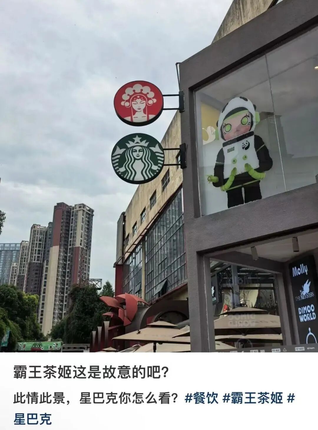 不用怀疑,追着星巴克开店,同样是霸王茶姬的商战策略。在国内不少城市的核心商圈,几乎有星巴克的地方,就会有一家霸王茶姬,网友甚至给这两者的商战赐名“姬巴大战”。