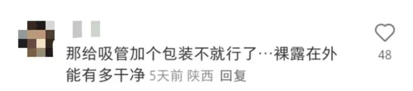 正如有网友所说,如果真的注重食品安全,用带包装的吸管就可以解决,不带包装的吸管裸露在公共场所,本身就不卫生,治标不治本。